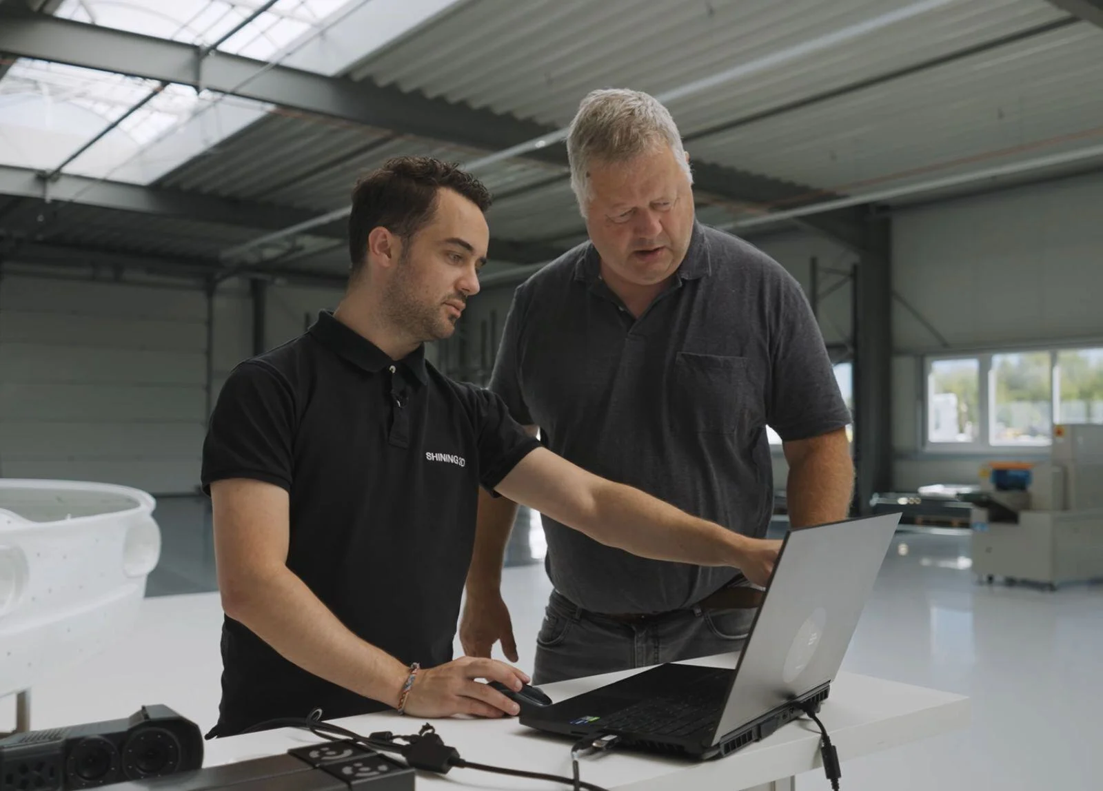 Tarama, mesh oluşturma, ölçüm ve raporlama adımlarının tamamı doğrudan tarayıcı üzerinde gerçekleştirilir. Ön tanımlı şablonlar ve sezgisel arayüz sayesinde operatör sadece parçayı tarar ve anında standartlaştırılmış ölçüm raporunu alır. SHINING3D Inspect yazılımı entegre çalışır ve detaylı analiz imkanı sunar.